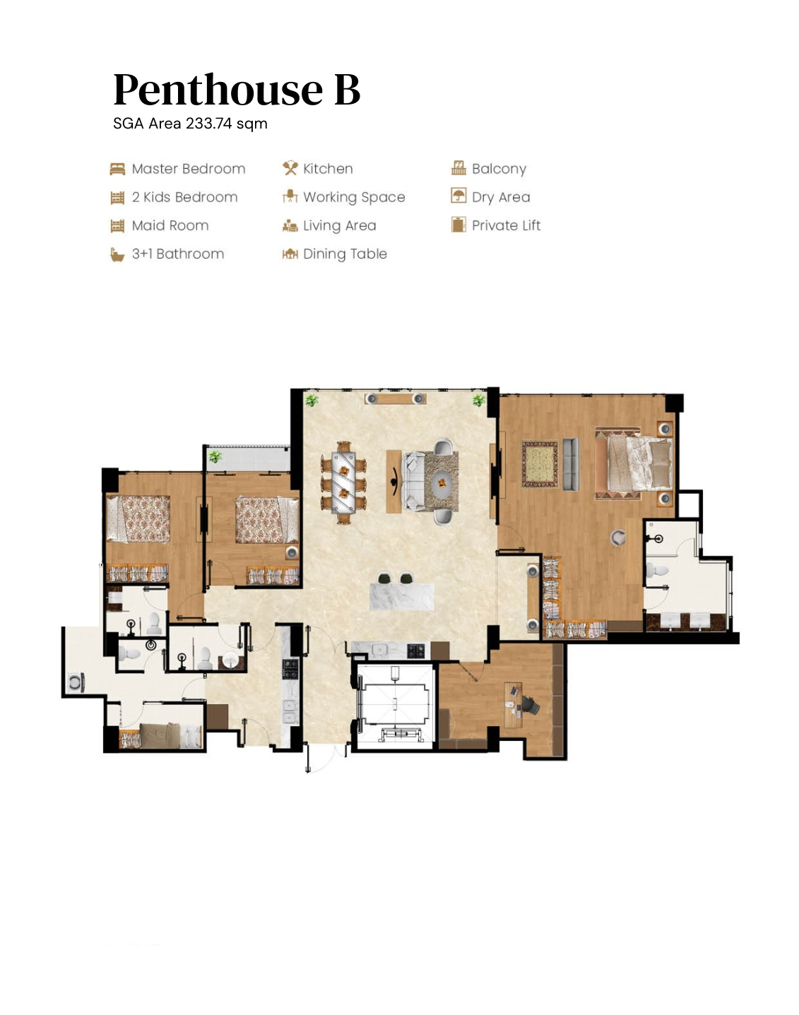 - Penthouse A (SGA 233.57 sqm) & Penthouse B (SGA 233.74 sqm)