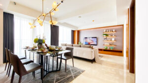 - Area Komunal yang Megah: Ruang Living dan Dining berkonsep open-plan yang sangat masif, dirancang secara khusus untuk menjadi tempat yang sempurna dalam menjamu tamu VVIP, kolega bisnis, atau mengadakan perayaan privat keluarga.