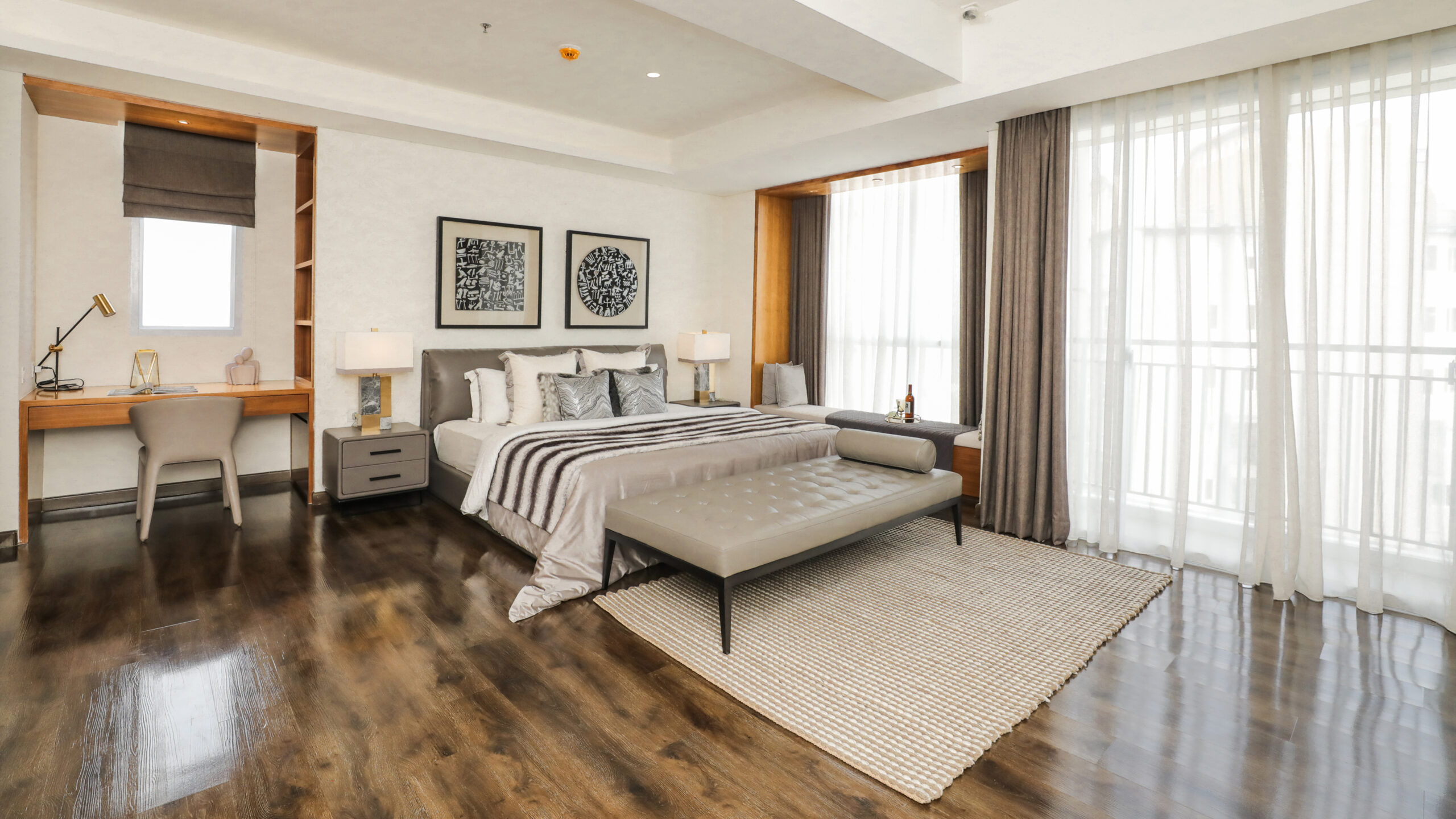 - Kamar Tidur Utama (Master Bedroom) Ekstra Luas: Dirancang layaknya presidential suite di hotel bintang lima, lengkap dengan ruang yang lega untuk bersantai dan kamar mandi en-suite pribadi.