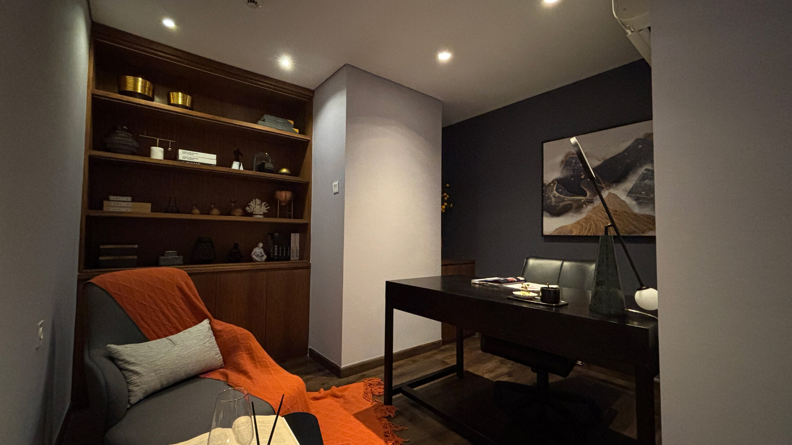 - Detail Interior: Keindahan abadi lantai Marble di area utama yang berpadu dengan kehangatan Parquet di area istirahat, dijaga dalam suhu yang selalu sejuk oleh sistem AC Mitsubishi yang terpasang di seluruh ruangan.